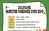 화순군 윤규진 기자2025. 01.03[한국저널뉴스]화순군은 3일 “소득이 높은 부유농촌” 실현과 화순 농업경쟁력 강화를 위해 「2025년도 농촌진흥 시범사업 신청」을 2025년 2월 3일까지 신청받는다고 밝혔다. 이번 농촌진흥 시범사업은 5개 분야(역량개발, 농촌자원, 식량작물, 원예작물, 난산업화) 22개 사업이다. 주요사업으로는 ▲4-H회원 영농정착 시범 ▲신규농업인 현장실습교육 ▲농산물 가공상품 친환경 패키징 개발 시범 ▲향토음식 및 전통식문화 계승활동 지원 시범 ▲밭작물 정밀파종 및 시비기술 시범 ▲흑염소 개체관리 보정장치 구축 시범 ▲이상기상 대응 복…