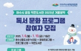 [한국저널뉴스]여수시가 공립 작은도서관 ‘겨울방학 독서문화 프로그램’에 참여할 6~7세 유아 및 초·중학생을 오는 6일부터 10일까지 5일간 모집한다. 프로그램 운영 기관은 ‘꿈을키우는(미평선경3차)’, ‘청솔글누리(돌산청솔2차)’, ‘화양열린(화양면민회관 2층)’, ‘국동(국동임시별관 1층)’ 작은도서관 4개소로, 각 기관에서 운영하는 프로그램이 상이하다. 꿈을키우는 작은도서관은 ‘페이지 위의 마술’, ‘책 한 권 맛있는 한 입’, ‘책이랑 보드랑’ 등 3개 프로그램을, 청솔글누리 작은도서관은 ‘그림책 속 큐브 여행’, ‘동화…