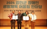 고흥군 윤규진 기자2024. 12.27[한국저널뉴스]강진군이 26일 강진아트홀 소공연장에서 2024년 장애인 생활체육 어울림 한마당을 개최했다. 이번 행사는 한 해 동안 장애인 생활체육 활동의 성과를 공유하고, 참여자 간의 화합을 도모하기 위해 마련됐다. 이날 행사는 강진원 강진군수, 서순선 강진군의회 의장을 비롯해 장애인체육회 임원, 장애유형단체 및 장애인 체육인 등 200여 명이 참석해 성황을 이뤘다. 올해 강진군은 전년보다 더 많은 예산을 투입해 장애인 체육 발전에 힘썼다. 이에 따라 제32회 전라남도장애인체육대회에서 군 단위 4위, 종합 9위를 차지했…
