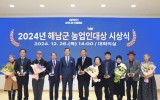 문화 윤규진 기자2024. 12.26[한국저널뉴스]2024년 해남군 농업인대상에 황산면 이병연(52세)씨 등 5명이 선정됐다. 이병연씨는 고품질(친환경)쌀 부문에 선정됐으며, 원예특작 부문 문내면 김찬호(67세), 농산물유통·가공 부문 마산면 이웅(64세), 임업 부문 현산면 김건영(59세), 축산 부문 해남읍 윤기현(55세)씨가 수상의 영예를 안았다. 이병연씨는 2006년부터 친환경 농법으로 전환하여 11.5ha의 벼 전체 면적을 유기농으로 재배하고 있으며,‘용의 눈동자’자체 브랜드를 개발하는 등 전문적이고 선도적인 영농 실천으로 고품질 쌀 농업 발전에 노력하고…
