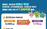 [한국저널뉴스]영암군은 20일 2025년 본예산 7,114억 원을 확정했다. 이는 올해 본예산 6,490억원의 9.63%인 625억원이 증액된 수치로, 본예산 단일 규모 처음으로 7,000억원을 넘어섰다. 일반회계는 9.85% 581억원 증가한 6,482억원, 특별회계는 7.42% 44억원 증가한 632억원이다. 영암군은 정부 긴축재정 기조 속, 건전재정을 유지하면서 민생 안정, 미래 준비 등 민선8기 혁신 군정의 결실을 맺기 위해 예산 편성을 했다. 나아가 공직자들이 국회와 중앙부처, 전남도 등을 꾸준히 방문해 예산 확보에 나…