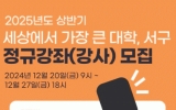 광산구 윤규진 기자2024. 12.18[한국저널뉴스]광주광역시 서구는 오는 27일까지 ‘세상에서 가장 큰 대학, 서구’2025년 상반기 정규강좌 강사를 모집한다. 서구의 평생학습 브랜드 사업인 세큰대는 주민의 지속 성장을 위해 근거리 생활권에서 교육받을 수 있는 동 캠퍼스 운영 및 특급배송 배달강좌 런투유 등 다양한 사업을 추진하고 있으며 전남대, 광주보건대, 조선이공대 등 지역대학과 연계․협력을 통해 전문성 있는 교육을 무료로 제공해 주민들의 큰 호응을 얻고 있다. 모집은 시민참여·인문사회·문화예술학과 총 3개 학과, 20개 강좌를 선정할 계획으로 교육 분야에 …