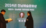 영광군 윤규진 기자2024. 12.17[한국저널뉴스]목포시의회 박수경 의원은 어제(16일) 순천 에코그라드호텔에서 열린 2024 전남종합예술제에서 「전남예술문화상」을 수상했다. 박수경 의원은 국가무형유산 살풀이춤 이수자로 50년 넘게 활발한 예술활동을 펼치며 전국에 목포와 전남의 문화예술을 널리 알리고 서로 교류할 수 있는 활동을 통해 2016년 전라남도 문화상(예술부문) 전라남도지사 표창을 수상한 적이 있다. 예술인으로서의 활동, 교육자로서의 활동 등 목포와 전남의 문화예술 발전에 큰 기여를 인정받아 전남 예술인으로서 남다른 열정과 헌신적인 활동으로 소속단체와…