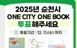 [한국저널뉴스]순천시가 오는 12월 11일까지 2025년 한 해 동안 순천시민이 함께 읽을 ‘2025년 순천시 One City One Book’ 선정을 위한 시민 투표를 진행한다고 밝혔다. One City One Book 시민 투표는 온라인과 오프라인으로 진행된다. 온라인은 네이버폼에서 진행하며, 온라인 투표 후 인스타그램 이벤트에 참여하면 추첨을 통해 100명에게 커피 기프티콘을 증정하는 이벤트도 운영한다. 오프라인은 순천시립도서관(삼산, 그림책, 연향, 기적, 조례호수, 신대, 어울림) 자료실에 비치된 투표용지를 통해…
