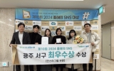 서구 윤규진 기자2024. 11.21[한국저널뉴스]광주광역시 서구가 ‘올해의 인스타그램’ 최우수 지자체로 선정됐다. 서구는 21일 서울프레스센터에서 열린 ‘제10회 2024 올해의 SNS’시상식에서 인스타그램 부문 기초지자체 최우수상을 수상했다. ‘올해의 SNS’는 (사)한국소셜콘텐츠진흥협회가 주관하고 과학기술정보통신부가 후원하는 시상식으로 매년 지자체, 공공기관, 기업 등의 SNS 매체별 운영현황을 평가해 국민과 활발히 소통하고 있는 우수 기관 및 기업을 선정해 시상하고 있다. 서구는 행정의 딱딱한 이미지를 탈피해 대중성과 현장성을 반영한 주민친화적 홍보 콘…