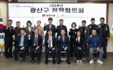 광산구 윤규진 기자2024. 11.12[한국저널뉴스]광주 광산구가 12일 구청 2층 상황실에서 국민의힘 광산갑·을 당원협의회와 ‘2024년 정책협의회’를 진행했다. 이번 정책협의회는 박병규 광산구청장과 광산구 간부 공무원, 국민의힘 광산갑·을 당협위원장, 주요 당직자 등 20여 명이 참석했다. 광산구는 △자전거 이용자 편의와 도로의 연결성을 위한 자전거 기반 구축 △급경사지(산월N1) 붕괴위험지역 정비사업 △도로 제설 전진기지 구축 △도심 속 호수공원 특화된 힐링 공간 조성 등 지역 현안 및 역점사업 10건을 논의하고 당 차원의 적극적인 협력을 요청했다. 박병규 …