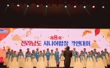 광산구 윤규진 기자2024. 11.11[한국저널뉴스]영광군 산울림시니어합창단이 전남 시군 합창단 25개 팀 1,000여 명이 참여한 가운데 2024년 제8회 전라남도 시니어합창 경연대회에서 우수상을 수상했다. 2016년부터 60세 이상 어르신 40여 명으로 구성된 영광군 산울림시니어합창단은 지휘자와 반주자의 지도 아래 꾸준한 연습을 통해 지정곡 아리랑, 자유곡 아름다운나라 두곡을 합창하여 유감없는 실력으로 심사위원과 청중으로부터 뜨거운 호응을 끌어냈다. 이날 경연에선 평균 연령 70대 어르신들이 피아노 반주에 맞춰 나이가 무색할 만큼 열정 넘치는 환상적 하모니…