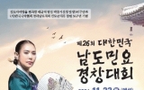 의회 윤규진 기자2024. 11.07[한국저널뉴스]진도군이 주최하고 사)한국국악협회가 주관하는 ‘제26회 대한민국 남도민요경창대회’가 오는 23일, 24일 이틀간 진도향토문화회관에서 개최된다. 대한민국 남도민요경창대회는 전통예술의 대중화와 신예 국악인 발굴에 이바지하며, 명실공히 우리나라를 대표하는 국악인 축제의 장으로 매년 개최되고 있다. 이번 대회는 명창부, 일반부 개인·단체, 신인부 개인·단체, 노장부, 중·고등부, 초등부, 총 8개 부문으로 나누어 진행되며, 명창부 대상에는 대통령상, 최우수상에는 국무총리상이 수여된다. 참가 방법은 11월 20일까지 국악…