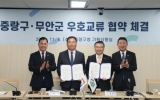 문화 윤규진 기자2024. 11.06[한국저널뉴스]전남 무안군은 서울 중랑구와 지난 6일 중랑구청에서 두 지역 공동 발전을 위한 우호교류 협약을 체결했다고 밝혔다. 이날 협약식에는 김산 무안군수와 이호성 군의장, 류경기 중랑구청장과 최경보 구의장을 비롯해 양 도시 관계 공무원 30여 명이 참석했다. 두 지자체는 이번 협약을 계기로 주민들이 체감할 수 있는 다양한 교류사업을 추진하고 상호 발전을 위해 힘을 모을 예정이다. 주요 협력 분야는 ▲문화·예술·체육 교류를 통한 도농 지역 간 소통과 화합의 장 마련 ▲지역 관광자원 연계 및 활성화를 위한 협력 ▲우수 농특산…