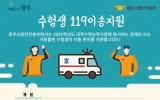 [한국저널뉴스]광주광역시소방안전본부는 오는 11월14일 시행하는 2025학년도 대학수학능력시험에 거동이 불편한 수험생의 편의를 위한 ‘119 이송 서비스’를 제공한다. ‘119 이송 서비스’는 장애나 사고부상 등으로 거동이 불편한 수험생을 대상으로 전화예약을 받아 시험 당일 119구급차로 자택에서 시험장까지 수험생을 데려다주고, 시험이 끝난 뒤 다시 자택까지 이송해주는 서비스다. 이 서비스를 이용하려는 수험생이나 학부모는 시험일 하루 전(13일)까지 119 또는 가까운 소방서에 전화예약 하면 된다. 광주소방안전본부는 또 시험장…