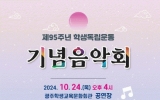 광주광역시 윤규진 기자2024. 10.17[한국저널뉴스]광주학생독립운동기념회관은 오는 24일 오후 4시 광주학생교육문화회관 공연장에서 ‘제95회 학생독립운동 기념음악회’를 개최한다. 이번 음악회는 ‘광주학생독립운동’ 95주년을 맞아 마련된 학생참여형 행사로, 순국선열의 숭고한 애국정신을 기리고자 기획됐다. 공연은 지역 중·고등학생들로 구성된 문화예술 동아리의 신청을 받아 8개 팀 총 202명이 참여하며, 학생교육문화회관이 공연장 등을 협조하고 학생독립운동기념회관이 기획, 공연, 운영팀을 전담한다. 공연은 지역 중·고등학교 문화예술 동아리 8개 팀 소속 학생 202명…