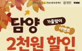 영광군 윤규진 기자2024. 09.27[한국저널뉴스]담양군은 10월 1일부터 이어지는 황금연휴를 맞이해 담양을 찾는 관광객을 대상으로 공공배달앱 ‘먹깨비’ 특별할인을 진행한다. 관광객에게는 혜택과 더불어 지역 경제 활성화를 도모하고자 진행하는 이번 행사는 선착순 700명을 대상으로 하며, 먹깨비 앱에서 12,000원 결제 시 2천 원 상당의 할인쿠폰을 즉시 사용할 수 있다. 착한가격업소 할인쿠폰 등 타 이벤트 쿠폰과도 함께 사용할 수 있다. 공공배달앱은 민간 배달앱에서 발생하는 입점비, 광고료가 없어(중개수수료 1.5%) 소상공인의 경영 부담을 줄이는 장점이 있…