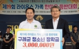 문화 윤규진 기자2024. 09.23[한국저널뉴스]전남 구례군은 국제라이온스협회 355-B3(전남동부)지구가 지난 21일 화엄사 일원에서 열린 제19회 라이온스 가족 한마음 등반대회에서 구례군 청소년들을 위한 장학금 300만 원을 기탁했다고 밝혔다. 국제라이온스협회 355-B3(전남동부)지구는 69개 클럽 3,000여 명의 회원이 활동하고 있으며, 해마다 집수리 사업, 이동 목욕, 헌혈, 김장 봉사 등 다양한 봉사활동을 이어가고 있다. 이날 열린 한마음 등반대회에는 배혁주 총재를 비롯한 지역위원장, 회원 및 가족들이 참석해 화합과 우정을 다지는 뜻깊은 시간을 보냈…
