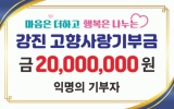 강진군 윤규진 기자2025. 12.23[한국저널뉴스]강진군이 2023년 고향사랑기부제도 시행 이래 첫 2천만 원 기탁자가 탄생했다고 밝혔다. 연간 기부 한도가 2천만원으로 상향된 올해 첫 최고액 기부자가 탄생했다. 해당 익명의 기부자는 강진군과 군민을 위해 기부금을 잘 써달라며 그 이상의 내용 언급을 정중하게 거절해 잔잔한 울림을 더했다. 강진군 관계자는 “강진을 사랑하는 기부자님의 감동적인 실천에 대단히 감사드린다”라며 “2026년에도 기부자의 자긍심이 될 수 있도록 ‘강진품애 기댄 일상동행 서비스’를 비롯한 기금사업을 성실히 추진하고, 품질 좋은 강진 답례품…