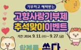 함평군 윤규진 기자2024. 09.10[한국저널뉴스]화순군은 10일 추석을 맞아 고향사랑기부제 홍보와 모금액 확대를 위한 ‘화순군 고향사랑기부제 추석맞이 이벤트’를 9월 11일부터 27일까지 진행한다고 밝혔다. 이벤트 기간 내에 화순군 기부 참여자를 대상으로 무작위 추첨을 통해 30명에게 3만 원 상당 화순군 고향사랑기부제 답례품을 추가 증정할 예정이며, 온라인(고향사랑e음), 오프라인(NH농협은행)을 통해 10만 원 이상 기부하고 답례품을 주문하면 자동으로 응모된다. 당첨자 발표는 10월 초 개별 문자를 통해 안내될 예정이다. 구복규 화순군수는 “이번 이벤트는…