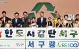 서구 윤규진 기자2024. 09.08[한국저널뉴스]광주 서구는 7일 오후 상무시민공원에서 제16회 자원순환의 날(9월 6일)을 기념해 ‘착한도시 서구랑 RE:100’행사를 개최하고, 자원순환관리사 18명 표창, 병뚜껑을 활용한 오브제 퍼포먼스 및 자원순환 실천형 프로그램 등을 진행했다.