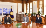 순천시 윤규진 기자2024. 09.05[한국저널뉴스]정기명 여수시장이 우원식 국회의장을 만나 환담하고, ‘제33차 유엔기후변화협약 당사국총회(COP33) 유치’ 등 현재 추진 중인 굵직한 현안에 대한 적극적인 협조를 건의했다. 5일 여수시에 따르면, 정 시장은 지난 3일 서울 여의도 국회 우원식 의장 집무실에서 열린 ‘국회의장-기후위기대응·에너지전환 지방정부협의회 간담회’에 참석했다. 이 자리에는 정 시장을 비롯해 협의회장인 박승원 광명시장과 부회장인 김이강 광주광역시 서구청장, 그리고 김경일 파주시장, 염태영·황명선 국회의원 등이 함께했다. 정 시장은 이날 우…