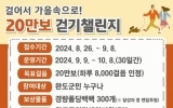 목포시 윤규진 기자2024. 08.28[한국저널뉴스]완도군은 걷기 좋은 계절 가을을 맞아 생활 속 걷기를 활성화하고자 ‘걸어서 가을 속으로! 20만 보 걷기 챌린지’를 진행한다. 챌린지는 9월 9일부터 10월 8일까지 30일간 진행되며, 기간 내 20만 보 걷기(하루 8,000보 인정)를 달성하면 된다. 20만 보 달성자 중 추첨을 통해 300명에게 보상 물품(경량 폴딩 백 팩)을 지급한다. 참여 방법은 ▶워크온 앱 설치 ▶완도군 커뮤니티 ‘너DO 나DO 건강한 걷기 운동’ 가입 ▶걸어서 가을 속으로! 20만 보 걷기 챌린지 '예약하기' 또는 '참여하기…