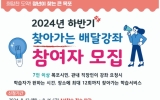 광주광역시 윤규진 기자2024. 08.08[한국저널뉴스]목포시는 오는 12일부터 16일까지 ‘2024년 하반기 찾아가는 배달강좌’ 학습자를 선착순 모집한다고 밝혔다. ‘찾아가는 배달강좌’는 학습자가 원하는 시간과 장소에 강사를 배달하는 찾아가는 평생학습 프로그램으로, 신청 대상은 7인 이상의 목포시민, 관내 직장인으로 구성된 학습 동아리이며, 문화예술, 공예, 악기 등 다양한 분야의 평생학습 강좌 신청이 가능하다. 하반기 운영 기간은 11월까지로, 학습 동아리당 최대 12회까지 강사료를 지원할 예정이다. 신청방법은 목포시청 누리집 또는 목포시 평생학습포털에 게재된 신…