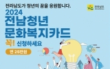 곡성군 윤규진 기자2024. 08.06[한국저널뉴스]장흥군은 올해 상반기 신청 기간 중 전남청년 문화복지카드를 신청하지 못한 청년들을 대상으로 8월 한달간 사업 대상자를 추가 모집한다고 6일 밝혔다. ‘전남청년 문화복지카드 지원사업’은 2022년 8월 1일 이전부터 계속 전남 도내에 거주하고 있는 19세 이상 28세 이하 청년(1996부터 2005년도 출생자)에게 문화복지 활동을 위해 1인당 최대 25만 원을 지원하는 사업이다. 지난 상반기에 신청했으나 거주 요건이 충족되지 않아 선정에서 제외된 청년도 거주 요건이 충족된 경우에는 신청이 가능하다. 다만 복지포인트…