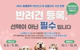 강진군 윤규진 기자2024. 08.05[한국저널뉴스]강진군은 8월 5일부터 9월 30일까지 반려동물 등록 자진신고 기간을 운영한다. 성숙한 반려동물 문화 조성 캠페인의 일환으로 시행하는 자진신고는 기간 내에 신규로 동물을 등록하거나 기존에 등록된 정보를 변경 신고하면 미등록이나 지연에 따른 과태료가 면제된다. 군은 자진신고 기간이 끝나는 10월부터 한 달간 동물 미등록 및 변경 사항 미신고에 대한 집중 단속을 실시할 계획이다. 소유자가 반려견을 등록하지 않은 경우, 100만원 이하의 과태료, 변경 사항을 신고하지 않았을 때는 50만원 이하의 과태료가 부과된다…