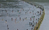동구 윤규진 기자2024. 07.30[한국저널뉴스]진도군 진도읍에 위치한 청용어촌체험마을 앞 갯벌에서 오는 8월 3일 ‘개매기 체험’이 진행된다. 개매기는 조차를 이용한 전통 어업방식의 하나로 갯벌에 그물을 쳐 놓고 밀물 조류를 따라 들어온 물고기가 썰물 때 갇히도록 하는 전통 고기잡이 방식이다. 물이 빠진 갯벌 위 그물에는 주로 숭어, 농어, 돔 등의 다양한 어류가 걸리게 되며 이때 체험 관광객들이 갯벌 안으로 들어가 맨손으로 직접 잡는다. 체험료는 어른 2만원, 어린이 5천원이며 해당 금액은 어촌마을 발전기금으로 사용될 예정이다. 개매기 체험을 위한 갯벌…