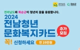 북구 윤규진 기자2024. 07.28[한국저널뉴스] 화순군(군수 구복규)은 8월 1일부터 8월 31일까지‘전남청년 문화복지카드 지원사업’ 대상자를 추가 모집한다고 26일 밝혔다. ‘전남청년 문화복지카드 지원사업’은 전라남도 내 거주하는 청년의 문화생활 향유 및 자기계발 기회를 제공하기 위해 문화복지비 연 25만 원을 지원하는 사업이다. 2022년 8월 1일 이전부터 전남 도내에 주소를 두고 2년 이상 계속 거주하고 있는 19~28세 청년(1996년~2005년 출생자)이면 신청할 수 있으며, 올해 상반기 및 5월, 6월 추가 신청자 중 거주기준 부적합으로 제…