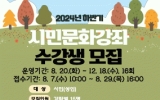 교육 윤규진 기자2024. 07.25[한국저널뉴스]광주중앙도서관은 ‘2024년도 하반기 시민문화강좌’ 수강생을 선착순 모집한다. 시민문화강좌는 지역민에게 다양한 분야의 문화예술 체험 기회를 제공하기 위해 기획됐다. 광주중앙도서관은 ▲스크린영어회화 ▲스마트폰활용법 ▲캘리그라피 ▲중국어회화 ▲일어독해 등 5개 강좌를 8월부터 12월까지 주 1회(총 16회)운영한다. 같은 기간 분관 최상준도서관은 ▲영어회화(초급·중급) ▲프랑스자수 ▲스마트폰 활용법 ▲서예 ▲캘리그라피 ▲연필 스케치 ▲패브릭 아트 등 8개 강좌를 운영한다. 각 강좌 신청은 광주중앙도서관 8월 7일…