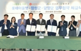 함평군 윤규진 기자2024. 07.24[한국저널뉴스]담양군이 지역 농특산물 판매를 위해 국내 최대 대형 쇼핑몰과 업무 협약을 체결했다. 담양군(군수 이병노)은 지난 24일 광주광역시 롯데아울렛 수완점에서 열린 ‘도농교류 활성화 및 지역상생 협약식’을 통해 이병노 담양군수와 김한종 장성군수, 문중오 롯데아울렛 광주수완점장이 3자 협약을 맺고 지역 농특산품 판매 확대와 상생발전을 위한 협력체계 구축에 손을 맞잡았다고 밝혔다. 협약을 통해 군은 9월 초에 롯데아울렛 수완점 야외광장에서 ‘추석맞이 직거래 장터’를 열고 지역의 우수 농특산물을 판매하며, 롯데온www.lo…