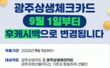 광주광역시 윤규진 기자2024. 07.18[한국저널뉴스]광주상생체크카드의 할인방식이 오는 9월 1일부터 선 할인에서 사용 후 캐시백으로 지원하는 방식으로 변경된다. 광주광역시(시장 강기정)는 광주상생체크카드의 할인지원방식이 충전금액의 7%를 할인해 주는 선 할인에서 충전금액을 사용한 후 7%를 환급(캐시백)해주는 방식으로 변경된다고 밝혔다. 다만 광주상생선불카드 할인방식은 기존과 동일하게 선 할인 방식으로 운영된다. 이번 광주상생체크카드 할인방식 변경은 행정안전부의 ‘2024년 지역사랑상품권 발행지원 사업 종합지침’ 및 ‘국비 지원 방향’에 따라 소비유발 효과와 정책…