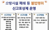 여수시 윤규진 기자2024. 07.08[한국저널뉴스]목포소방서는 특정소방대상물 안전관리 강화 및 화재 시 인명피해 방지를 위해 소방시설 등 불법행위 근절 신고포상제를 상시 운영한다고 밝혔다. 소방시설 등 불법행위 신고포상제는 소방시설을 대상으로 불법 행위를 신고하는 경우 포상금을 지급해 시민들의 안전의식을 확산과 인명피해를 최소화하고자 추진되는 제도다. 신고 대상으로는 문화ㆍ집회시설이나 판매ㆍ숙박ㆍ위락시설, 다중이용업소 등에서 ▲비상구 등 폐쇄ㆍ훼손 행위 및 장애물을 설치하여 피난에 지장을 주는 행위 ▲소화펌프 등 소방시설 고장 방치 ▲소방시설 차단ㆍ임의 조작으로 …