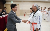 서구 윤규진 기자2024. 06.20[한국저널뉴스]박병규 광산구청장이 20일 광산구보건소에서 진행된 ‘으라차차 건강 태권도’ 통합 승급심사 현장을 찾아 전원 승급에 성공한 참여 어르신들과 기쁨을 나눴다. ‘건강 태권도 교실’은 지역 어르신의 신체적, 정신적 건강 증진을 위해 광산구가 진행하고 있는 건강 프로그램으로, 2022년 시범사업 이후 확대돼 현재 더불어락노인복지관을 비롯한 복지관 3개소에서 운영 중이다.