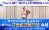 전라남도 윤규진 기자2024. 06.07[한국저널뉴스]광주 서구의회 김균호 의원이 7일, 광주광역시자치구의회의장협의회로부터 지방의정 발전을 위한 의정활동의 공로를 인정받아 ‘지방의정봉사상’을 받았다. 김 의원은 작년 의원연구단체 구성을 통해 공부하는 의회로서 지방 의정 발전을 위해 노력하고, 지역 주민들이 일상에서 지방의회의 역할이 체감될 수 있도록 활동한 공로를 인정받아 상을 수상했다. 김균호 의원은 “앞으로도 공부하는 의원, 주민이 체감하는 선진 의정활동을 고민하고 궁극적으로는 지방자치 발전 과정에 주민이 중심이자 대표라는 점이 보다 깊이 체감될 수 있도록 더 …