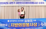 의회 윤규진 기자2024. 06.07[한국저널뉴스]광주 서구의회 김형미 의원(양동, 양3동, 농성1·2동, 화정1·2동)이 광주광역시자치구의장협의회로부터 대한민국지방의정봉사상을 수상했다고 밝혔다. ‘대한민국지방의정봉사상’은 전국 지방의회 의원을 대상으로 지방 의정 발전과 주민화합을 위하여 헌신적으로 봉사하는 등 지역사회발전에 기여한 공이 큰 지방의회 의원에게 수여하는 상이다. 김형미 의원은 광주 최초 '시책일몰제 운영 조례'를 발의하여 행정의 책임성 강화 및 예산 운영의 효율성 제고를 위해 앞장서 왔으며, 평소 적극적인 의정활동을 통해 구민의 삶의 질 향상에 기여…