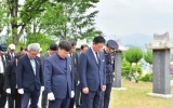 전라남도 윤규진 기자2024. 06.07[한국저널뉴스] 전라남도는 6일 1천700여 분의 위패가 모셔진 의향 보성 현충공원에서 ‘대한민국을 지켜낸 당신의 희생을 기억합니다’라는 주제로 제69회 현충일 추념식을 개최했다. 추념식에는 김영록 전남도지사와 김철우 보성군수, 문금주 국회의원, 보훈단체장, 국가유공자와 유족 등 200여 명이 참석했다. 이날 오전 10시 정각에 울린 사이렌 소리와 함께 순국선열 및 호국영령에 대한 묵념을 올린 후 헌화·분향, 도지사 표창, 추념사, 추모편지 낭독과 추모공연, 현충일 노래 제창 순으로 진행됐다. 특히 추념식에선 고 김…