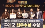 의회 윤규진 기자2025. 10.16[한국저널뉴스]전남 구례군이 10월 16일, 한국프레스센터 국제회의장에서 열린 ‘제15회 2025 대한민국 SNS대상’시상식에서 기초지자체(군) 부문 최우수상을 수상했다. 대한민국 SNS대상은 (사)한국소셜콘텐츠진흥협회가 주최하며 공공기관과 기업의 소셜미디어 운영 우수 사례를 선정해 시상하는 국내 대표 SNS 관련 어워즈다. 구례군은 유튜브, 인스타그램, 페이스북, 블로그, 카카오톡 채널 등 다양한 SNS 플랫폼을 활용해 군정 소식을 효과적으로 알리고, 군민 및 외부와의 소통을 강화한 점이 높은 평가를 받았다. 특히, 유튜브 …