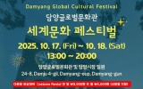 담양군 윤규진 기자2025. 10.14[한국저널뉴스]담양군은 오는 17일부터 이틀간 담양글로벌문화관과 담양오일시장 일원에서 ‘세계문화페스티벌’을 연다고 밝혔다. 행사에서는 세계 각국의 전통의상 패션쇼와 공연, 의상체험, 먹거리 부스 등 다채로운 프로그램이 펼쳐진다. 행사는 오후 1시부터 밤 8시까지 진행되며, 군민과 관광객, 지역 상인, 예술인이 함께 어우러지는 문화 교류의 장이 될 전망이다. 주요 프로그램으로는 ▲전통의상을 선보이는 글로벌 패션쇼 ▲직접 입어보는 의상체험 ▲세계 전통문화 공연 ▲K-POP 커버댄스 ‘데몬 헌터스’ 무대 ▲노래자랑과 버스킹 공…
