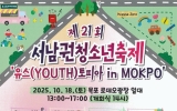 목포시 윤규진 기자2025. 10.14[한국저널뉴스]제21회 서남권청소년축제가 ‘유스(YOUTH)토피아 in MOKPO’를 주제로 오는 10월 18일(토) 오후 1시부터 5시까지 목포 로데오광장 일대에서 열린다. 이번 행사는 목포시가 주최, 서남권청소년축제추진위원회가 주관, 전라남도교육청이 후원하며, 전남 서남권 청소년과 청소년지도자, 시민 등 1,000여 명이 참여할 예정이다. 축제는 식전공연과 ▲경연프로그램(StageON) ▲체험부스운영(PlayON) ▲참여형 프로그램(7종) 등 다채로운 내용으로 진행된다. 식전공연에서는 목포백련초등학교 6학년 임사랑 학생의 …