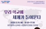 광주광역시 윤규진 기자2025. 12.07[한국저널뉴스]광주광역시서부교육지원청은 오는 15일 오후 3시30분 시민협치진흥원 대강당에서 ‘2025 광주 광산구 교육국제화특구 성과공유회 및 특강’을 개최한다. 이번 행사는 ‘우리 학교에 세계가 들어온다’를 주제로, 학교 현장에서 추진된 글로벌 교육활동 우수사례를 공유하고 학생·교사·학부모·시민에게 글로벌 감수성을 확산하기 위해 마련됐다. 행사는 교육국제화특구 주요 운영 성과 소개, 특구 프로그램에 참여한 월곡초등학교 등 3개 학교 우수사례 발표, 독일 출신 방송인 다니엘 린데만(Daniel Lindemann)의 ‘다문화의 …