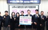 문화 윤규진 기자2025. 12.05[한국저널뉴스]전라남도 나주시는 지난 3일 나주 일반산단 입주기업협의회가 연말연시를 맞아 지역 내 취약계층 지원을 위해 ‘희망 2026 나눔 캠페인 성금’ 300만 원과 자체 생산한 식료품 960만 원 상당 등 총 1260만 원을 기탁했다고 밝혔다. 이번 기탁은 일반산단 입주기업들이 경기침체 속에서도 지역사회 나눔에 동참하자는 뜻을 모아 추진된 것으로 식품 후원은 일반산단 내 10개 업체가 생산한 제품들로 구성돼 지역기업의 특색을 살린 후원이라는 점에서 의미를 더했다. 이날 나주시청 소회의실에서 열린 기탁식에는 윤병태 나주시장…
