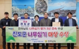 진도군 윤규진 기자2025. 12.15[한국저널뉴스]진도군이 전라남도가 주관한 ‘2025년 전라남도 나무심기 평가’에서 ‘대상’을 받았다. 이번 평가에서는 전남의 22개 시군을 대상으로 ▲나무심기 실적 ▲홍보 활동 ▲신규 시책 발굴 ▲예산 활용 등 전반적인 추진 과정을 종합적으로 심사했다. 진도군은 공원관리사업소를 중심으로 녹지 공간 조성 사업을 체계적으로 추진하며 높은 평가를 받았다. 특히, 최근 3년 동안 ‘나무심기 평가’에서 ▲2023년 우수상 ▲2024년 최우수상▲2025년에는 영예의 대상을 받으며, 3년 연속 수상과 더불어 평가 등급이 꾸준히 상승하는 의…