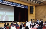 교육 윤규진 기자2025. 12.17[한국저널뉴스]광주시교육청시민협치진흥원은 지난 16일 김대중컨벤션센터 컨벤션홀에서 학생, 학부모, 교직원, 시민 등 100여 명이 참여한 가운데 ‘2025 광주교육 100인 100분 토론회’를 개최했다. 이번 토론회는 교육 의제에 대한 시민 의견을 수렴하고, 교육공동체 구성원들이 함께 광주교육의 정책 방향을 논의하기 위해 마련됐다. 토론회는 광주교육 정책에 대해 논의하고, 이어 이정선 교육감과 시민들이 ‘타운홀 미팅’ 방식으로 자유롭게 질의응답하는 순으로 진행됐다. 1부에서는 ‘광주교육의 성과에 대한 평가와 정책 개선 방안…