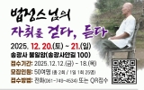 순천시 윤규진 기자2025. 12.15[한국저널뉴스]순천시는 법정스님의 삶과 정신을 시민들과 함께 나누기 위한 인문 체험 프로그램 '법정스님의 자취를 걷다, 듣다'를 오는 20일부터 21일까지 송광사 불일암 일원에서 운영한다고 밝혔다. 이번 프로그램은 법정스님의 수행 터전이었던 불일암에서 진행되는 시민 참여형 인문 프로그램으로, 총 2회(회당 25명) 운영하며 총 50여 명이 참여할 수 있다. 접수는 오는 18일까지 전화(061-749-4534) 또는 QR코드로 신청 가능하다. 특히 이번 프로그램은 최근 예비문화유산으로 선정된 ‘법정스님 빠삐용 의자’와 함께 소…