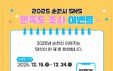 나주시 윤규진 기자2025. 12.15[한국저널뉴스]순천시는 시 공식 SNS 채널 이용자들을 대상으로 ‘2025년 순천시 SNS 만족도 조사 이벤트’를 개최한다고 밝혔다. 이번 행사는 시민들이 시정 소식을 보다 쉽고 재미있게 접할 수 있도록 운영 중인 순천시 공식 SNS 채널에 대해 만족도를 조사하고, SNS 참여형 이벤트를 통해 소통을 강화하기 위해 마련됐다. 참여 방법은 시에서 운영하는 SNS 채널 유튜브와 당근마켓을 구독한 후, 온라인 설문조사에 응한 이용자를 대상으로 진행된다. 설문조사와 이벤트는 15일부터 26일까지 운영될 예정이며, 추첨을 통해 250…