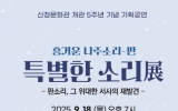 담양군 윤규진 기자2025. 09.04[한국저널뉴스]전라남도 나주시가 나주신청문화관 개관 5주년을 맞아 특별 무대를 진행한다. 4일 나주시에 따르면 오는 18일 오후 7시 기획공연 ‘흥겨운 나주소리-판 특별한 소리展’을 열어 소리의 기원과 전승의 의미를 되새기는 특별 공연을 개최한다. 이번 공연은 판소리의 본향 나주에서 지역 예인들의 넋을 기리고 위로하는 ‘나주신청 선생안제’를 재현하며 판소리의 시작부터 일제강점기를 거쳐 현재에 이르기까지의 변화상을 무대에 담는다. 출연진으로는 국가무형유산 판소리 예능 보유자 윤진철, 판소리고법 전승 교육사 정회천, 승무 전승 교…