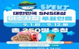 여수시 윤규진 기자2025. 09.04[한국저널뉴스]여수시가 ‘2025 대한민국 SNS 대상’ 10년 연속 수상을 목표로 오는 12일까지 전 국민을 대상으로 온라인 투표 이벤트를 진행하고 있다. 대한민국 SNS 대상은 (사)한국소셜콘텐츠진흥협회가 주최하고 과학기술정보통신부가 후원하는 SNS 분야의 권위 있는 상으로 공공기관과 기업의 SNS 소통 역량을 종합 평가한다. 특히 국민 참여 평가의 일환으로 온라인 투표가 진행된다. 투표와 이벤트에는 누구나 참여할 수 있으며, 대한민국 SNS 대상 누리집에 접속해 네이버 아이디 로그인 후 ‘여수시청’에 투표하면 된다. …
