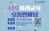 강진군 윤규진 기자2025. 12.03[한국저널뉴스]전라남도 나주시가 미래 교육 성과를 시민과 공유하는 ‘나주미래교육소통한마당’을 오는 12월 13일 한국에너지공과대학교 대강당에서 개최한다. 이번 행사는 올해 추진한 교육 프로그램의 성과를 나누고 학생과 학부모가 함께 참여하는 소통 중심의 교육 축제로 꾸며질 예정이다. 나주시와 나주교육진흥재단이 공동 주최하고 나주미래교육지원센터가 주관하는 이번 행사는 오후 2시 식전 공연인 나주이화유스오케스트라 연주를 시작으로 본격 진행된다. 행사에서는 나주교육진흥재단과 나주미래교육지원센터가 추진해 온 주요 사업의 경과보고, 교육…