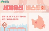 순천시 윤규진 기자2025. 09.03[한국저널뉴스]순천시와 순천시 세계유산보존협의회는 오는 12일부터 27일까지 ‘2025 세계유산축전 선암사, 순천갯벌’ 버스투어 프로그램을 운영한다고 밝혔다. 이번 버스투어는 세계문화유산 선암사와 세계자연유산 순천갯벌을 하루에 모두 탐방하는 일정으로 매주 화요일부터 토요일까지 오전 10시 10분, 순천역 시티투어 버스 승강장에서 출발한다. 첫 행선지인 천년 고찰 선암사에서는 사찰 순례와 AR․VR 등 실감형 공연이 결합된 ‘만일(萬日)의 수행’ 프로그램을 체험할 수 있다. 투어 참여자는 일주문에서 시작해 대웅전, 불조전, 무…