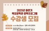 목포시 윤규진 기자2025. 08.26[한국저널뉴스]목포시는 목포문학관에서 오는 9월부터 12월까지 하반기 문학 교육프로그램을 운영한다고 밝혔다. 이번 프로그램은 성인을 대상으로 한 문예대학 시·소설 창작반과 초등학생을 대상으로 한 어린이 문학교실(다양한 글쓰기·교과서 속 논술의 비밀) 등 총 4개 강좌로 구성됐다. 문예대학은 소설가 채희윤(전 광주여대 교수)이 지도하는 소설 창작반(매주 화요일 14시)과 시인 김선태(목포대 교수)가 지도하는 시 창작반(매주 금요일 10시)으로 운영된다. 9월부터 강좌별 성인 30명 내외를 모집해 총 13회 진행되며, 글쓰기 작…