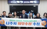 나주시 윤규진 기자2025. 12.02[한국저널뉴스] 전라남도 나주시가 불법광고물 정비 강화, 건전한 광고문화 확산, 폐현수막 재활용체계 구축 등 전방위적인 도시환경 개선 노력을 인정받아 ‘2025년 전라남도 옥외광고업무 평가’에서 ‘최우수상’을 수상했다. 나주시(시장 윤병태)는 이번 평가에서 폐현수막 재활용 시범사업 추진, 올바른 광고문화 기반 조성, 불법광고물 정비 등 여러 주요 항목에서 고르게 높은 점수를 받으며 최우수 기관으로 선정됐다고 2일 밝혔다. 시는 폐현수막 재활용을 위한 협약 체결, 집하장 설치 등 재활용 인프라를 구축하고 폐현수막 활용을 촉…